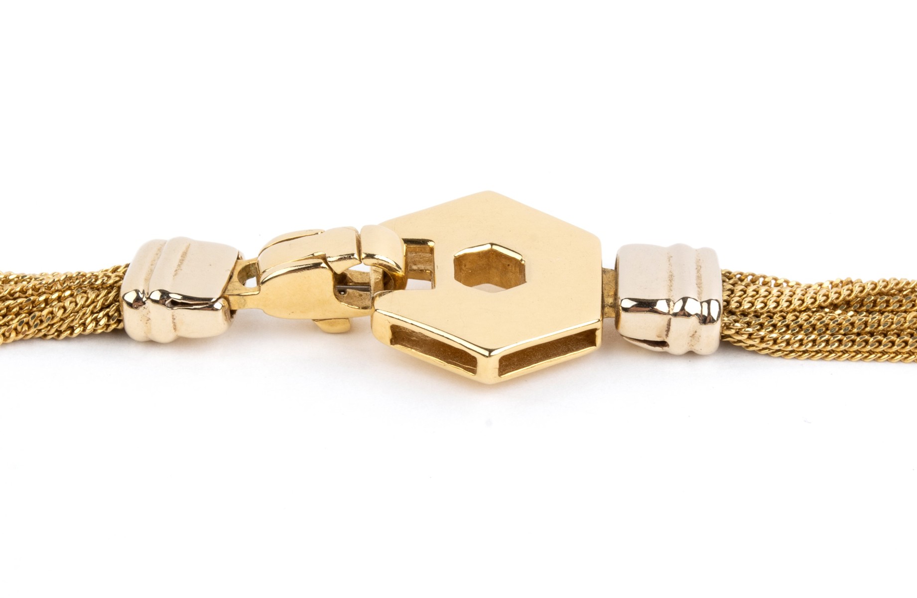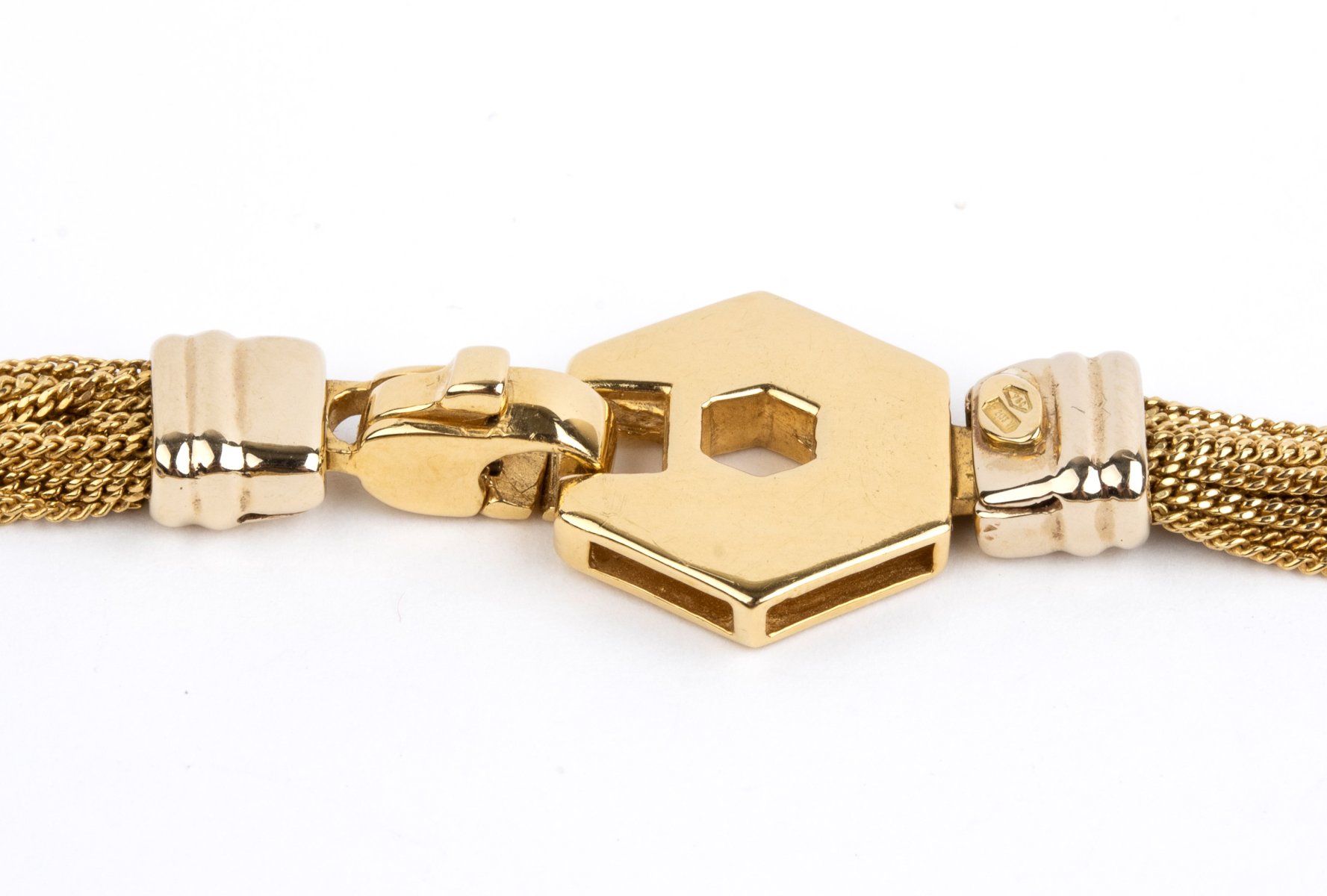 19 fili in maglia grumetta piatta con chiusura geometrica, in oro giallo 18k.