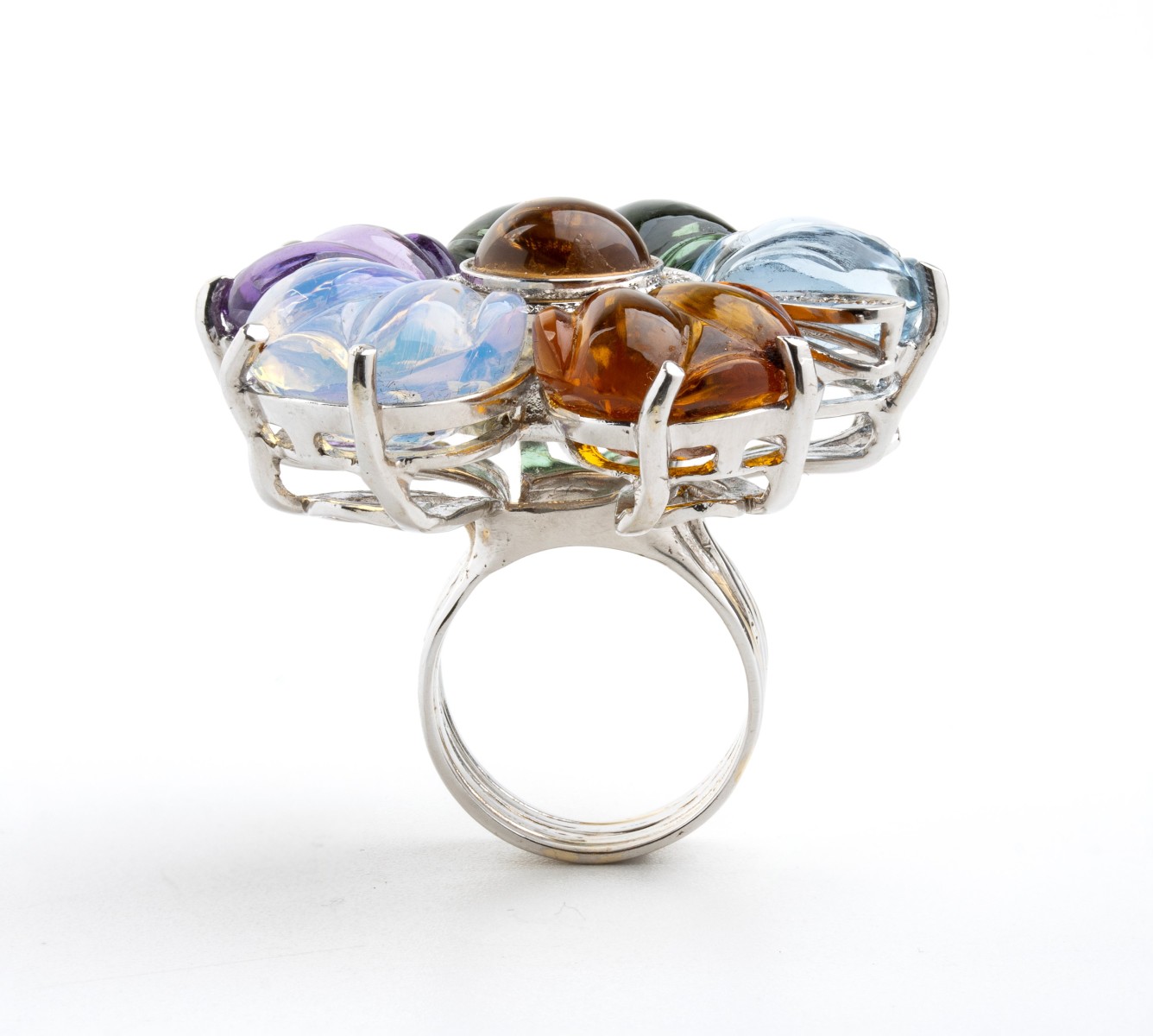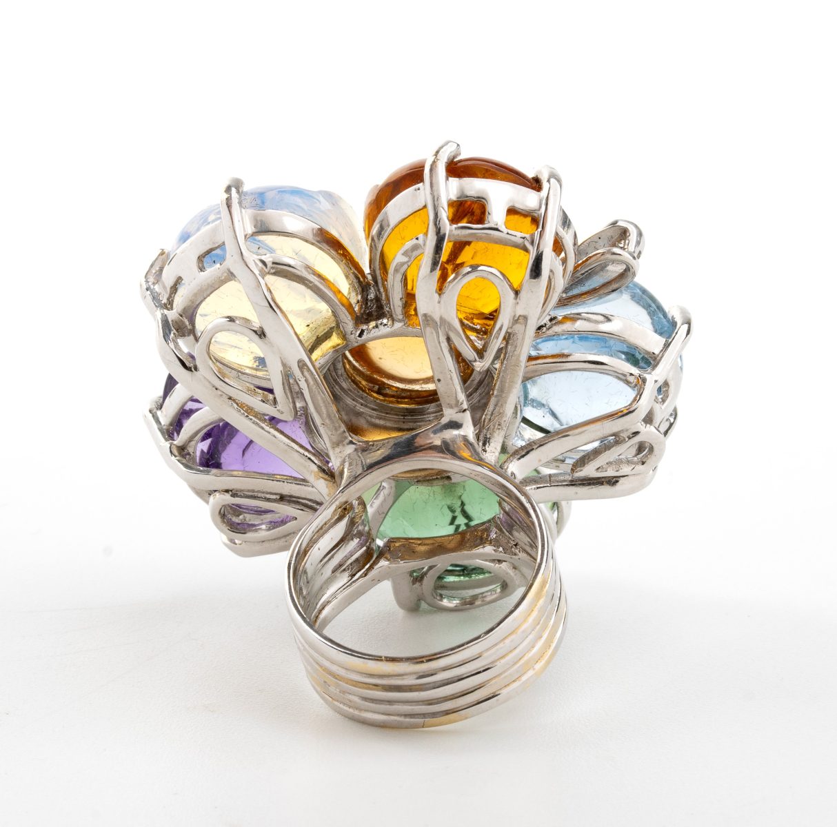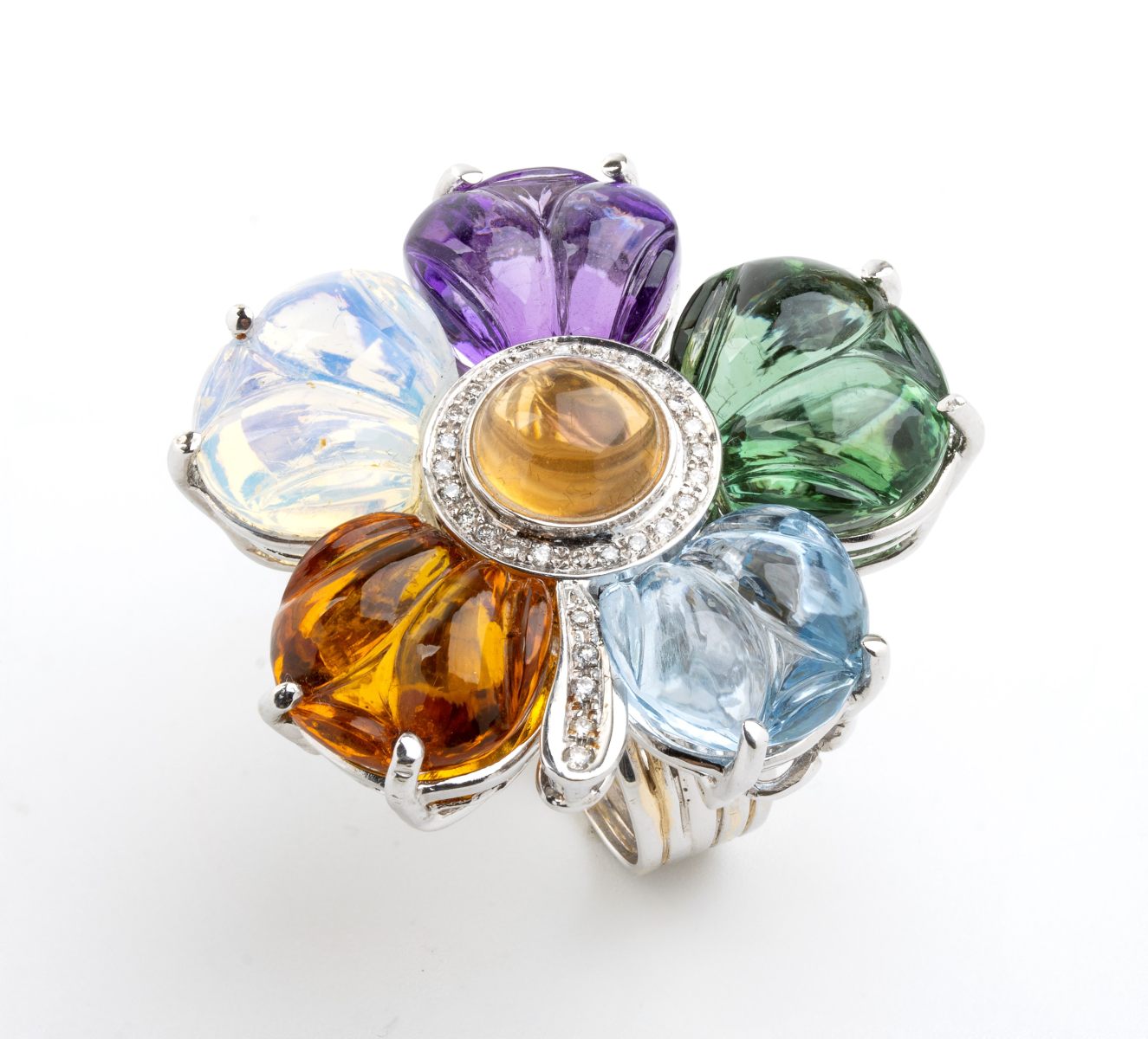Anello in oro bianco con diamanti e paste vitree in oro bianco 18k, a forma...
