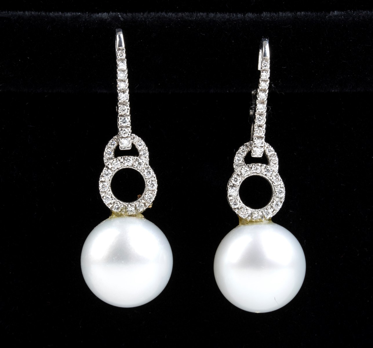 in oro bianco 18k, impreziositi da diamanti e perle Australiane.