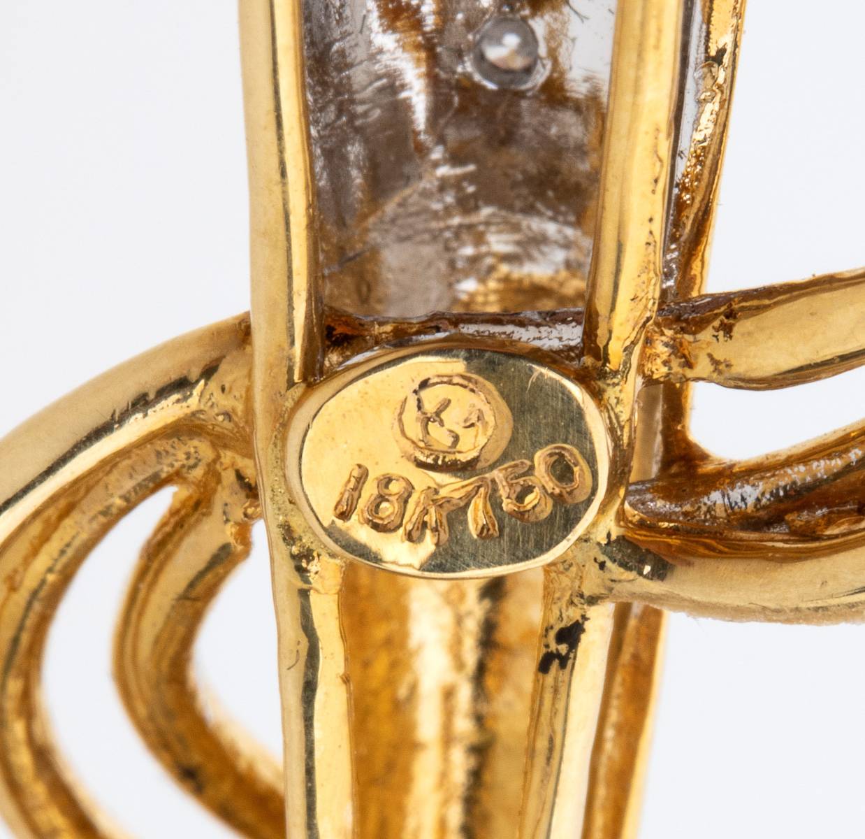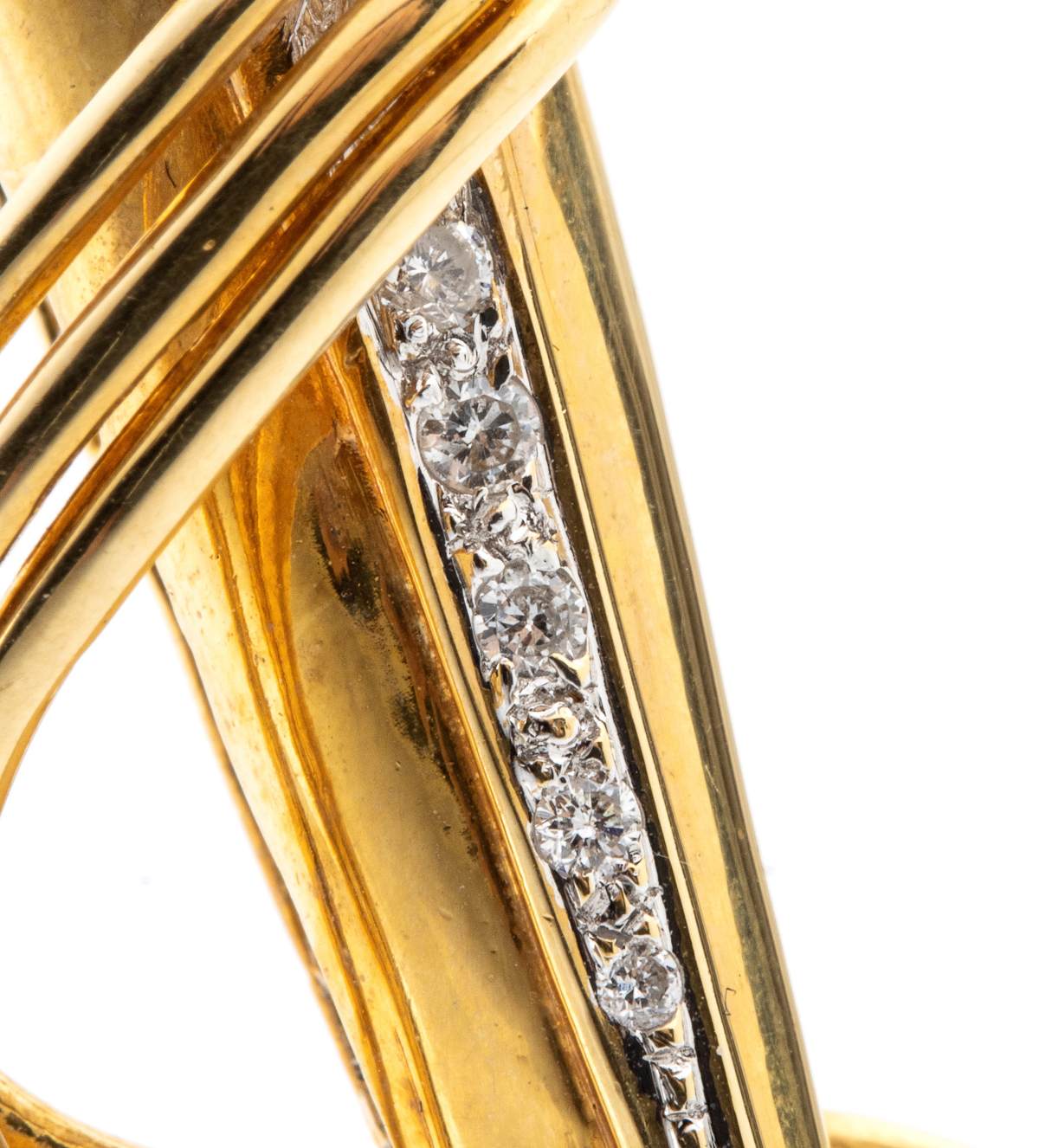 in oro giallo 18k, a forma di cornucopia avvolta da nastri in diamanti.
