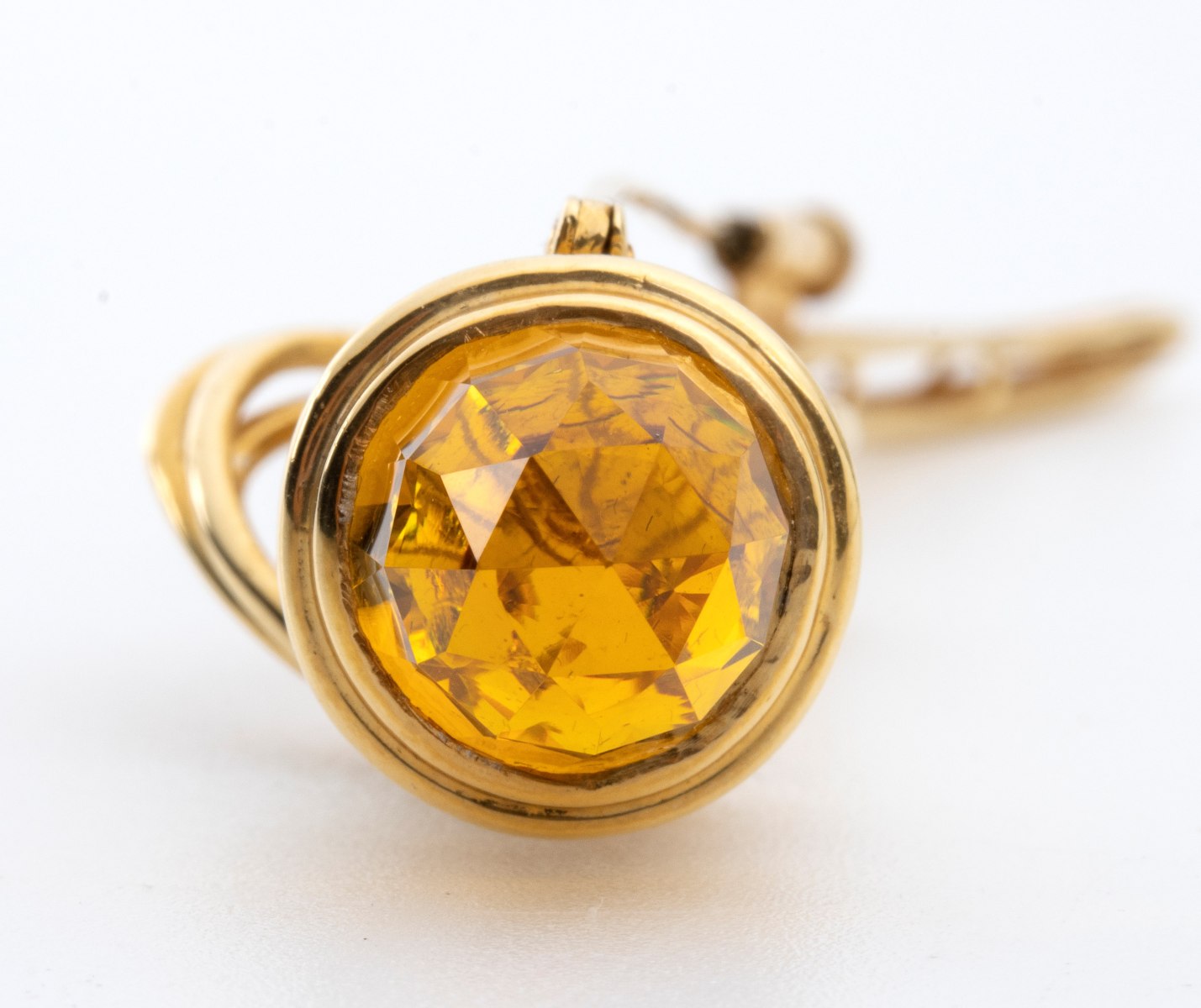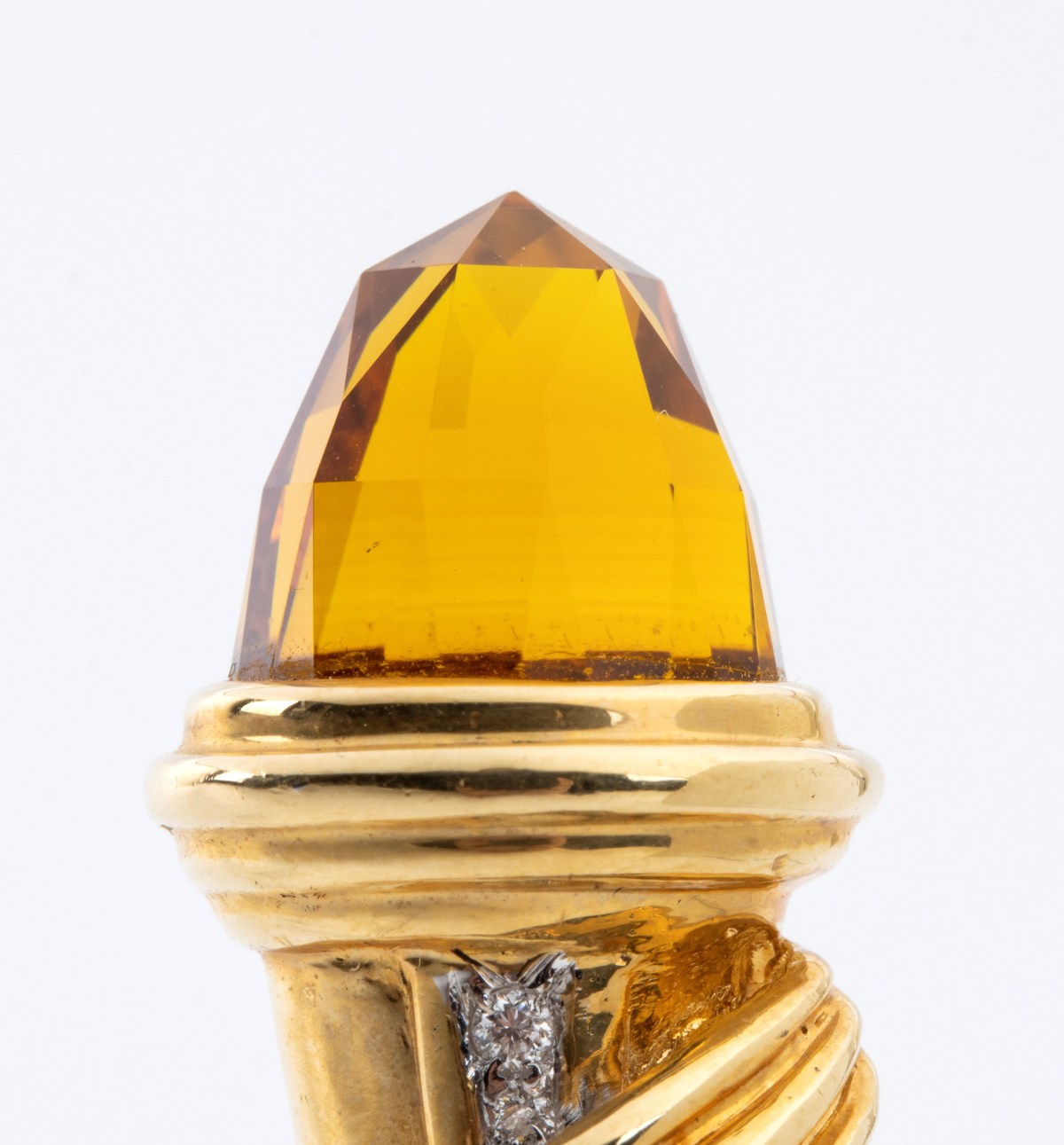 Spilla in oro con quarzo citrino e diamanti in oro giallo 18k, a forma di...