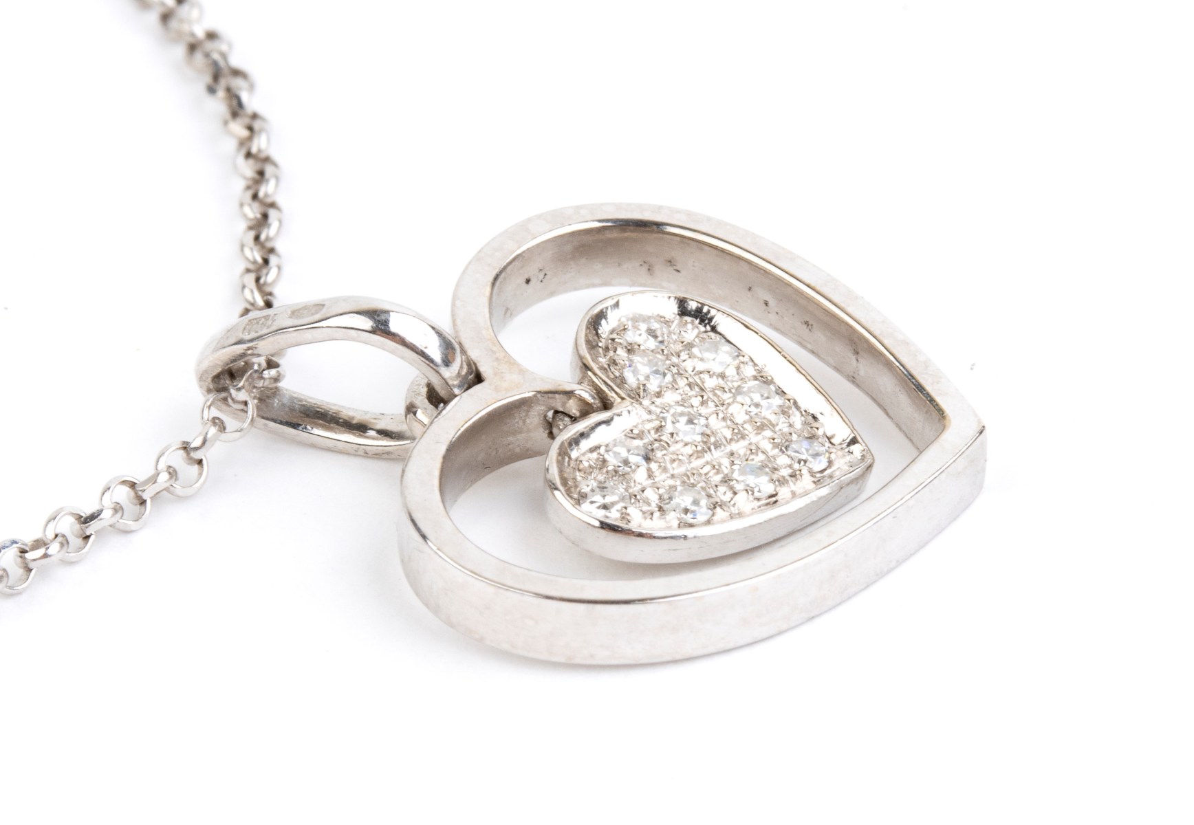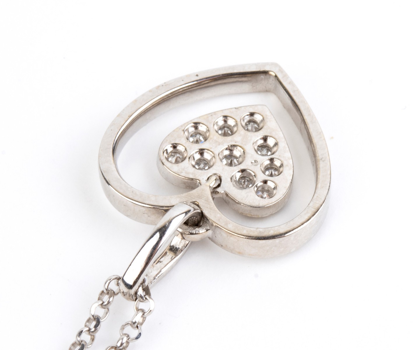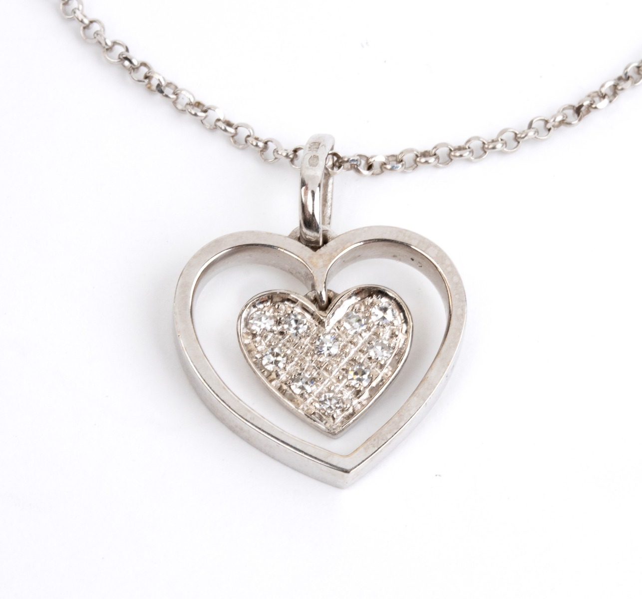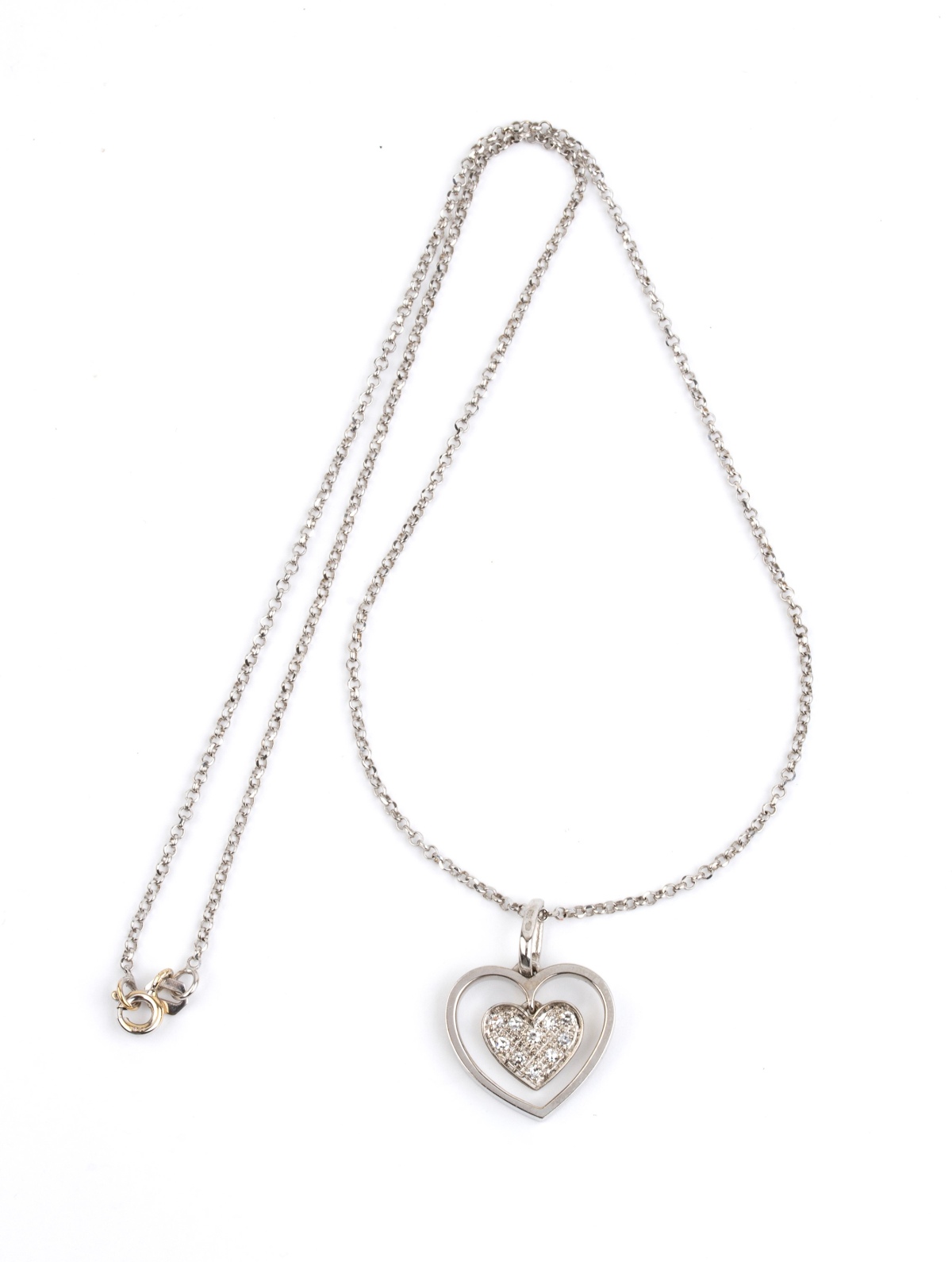 in oro bianco 18k, con pendente a forma di cuore impreziosito da un pavé di diamanti.