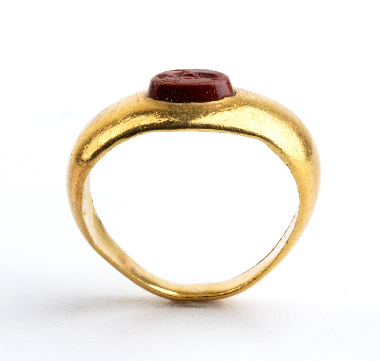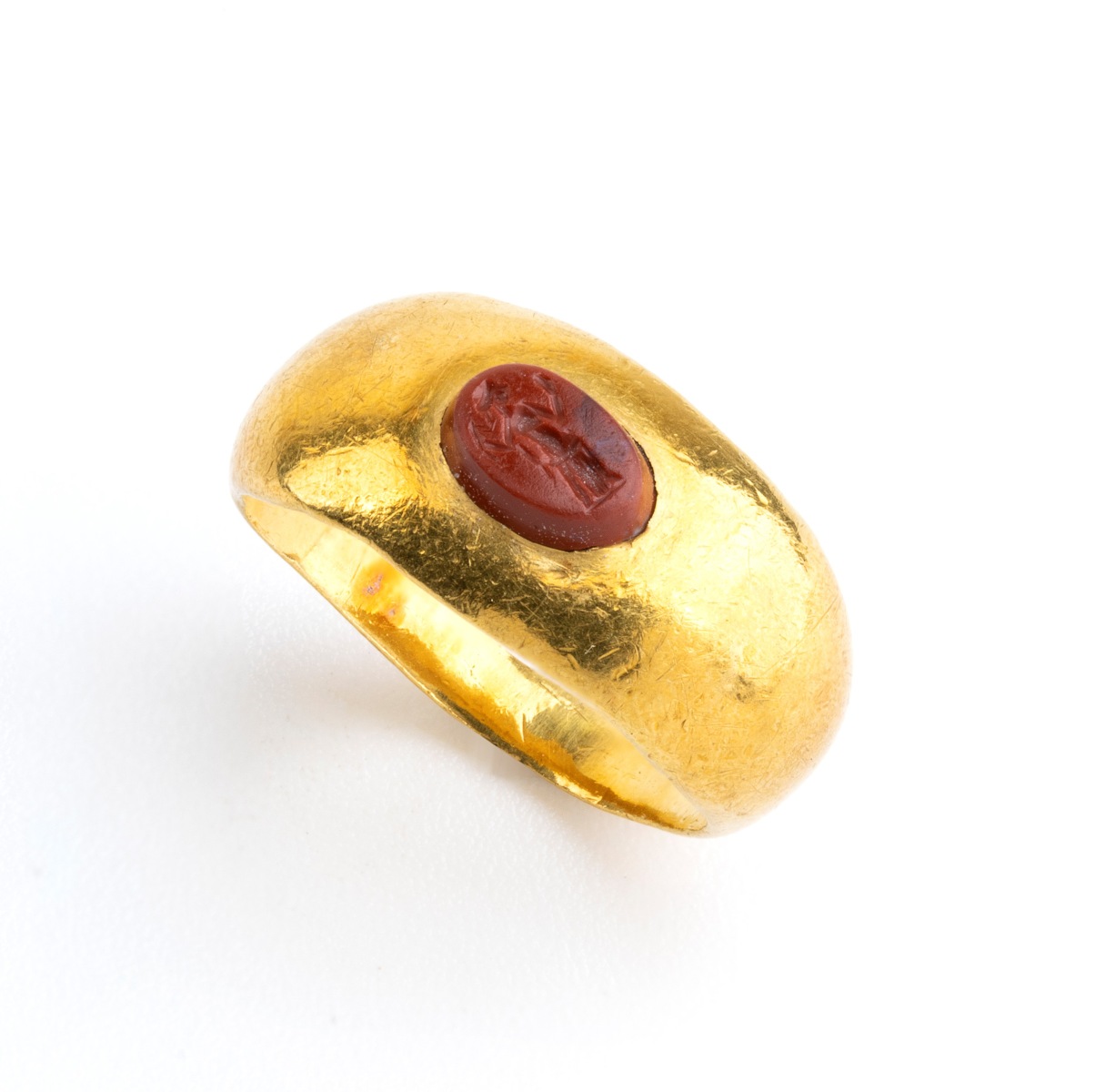 Anello stile archeologico in oro incastonato con diaspro rosso intaglio in...