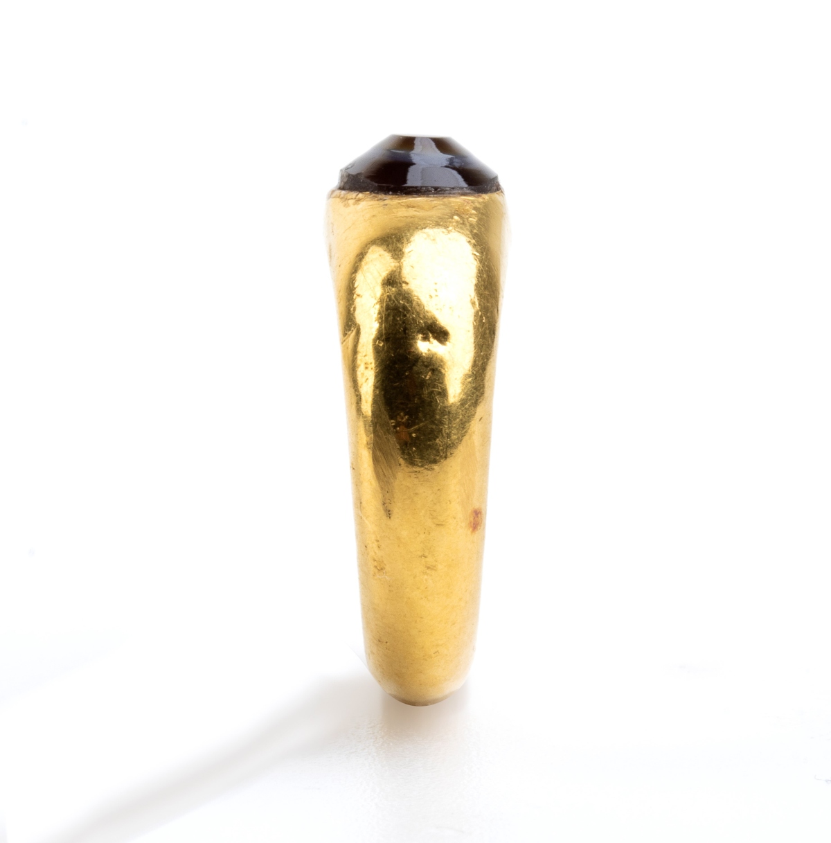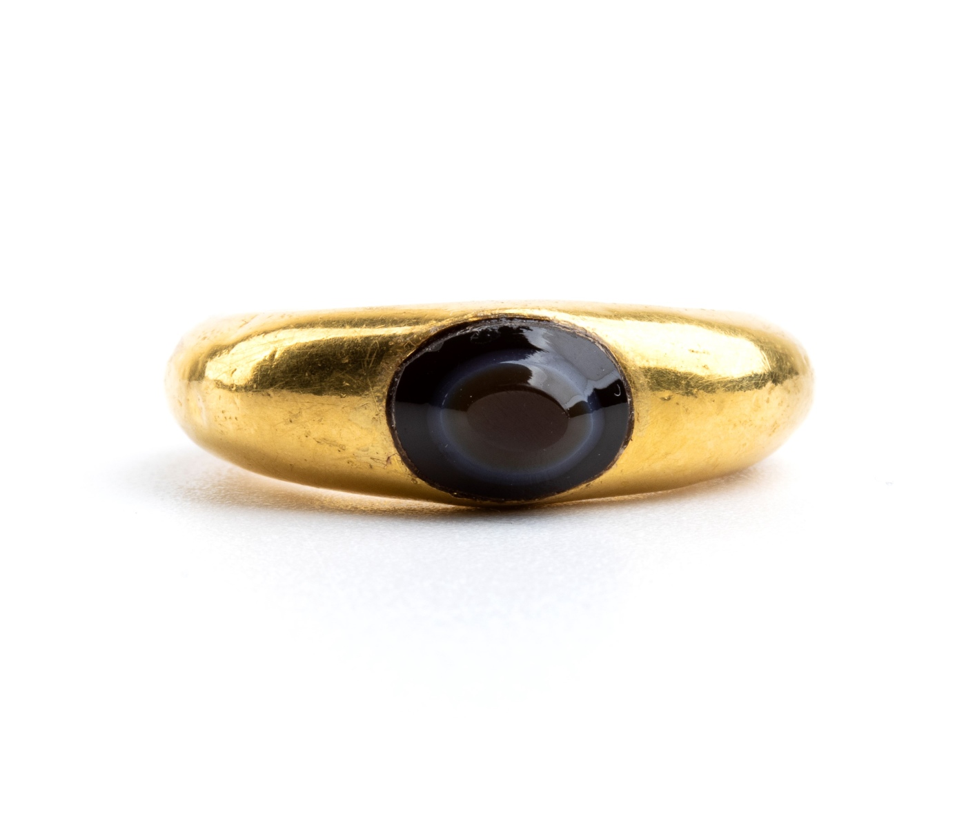 Lot 183 | Anello stile archeologico in oro incastonato con agata Misura IT 4 - Misura...
