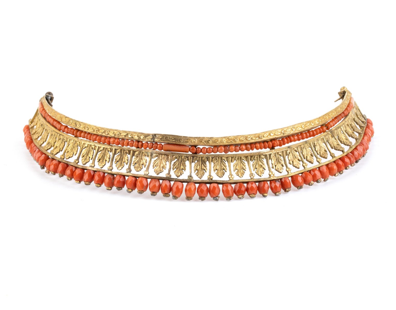 Tiara in rame dorato e corallo Mediterraneo XIX secolo