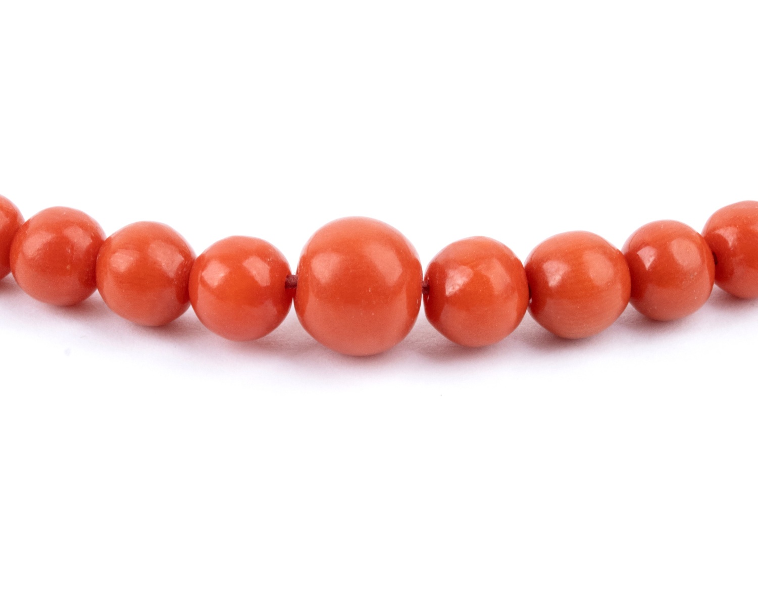 ad un filo di sfere di corallo Mediterraneo (corallium rubrum) disposte in gradazione.