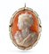 Spilla in oro con cammeo e perle cammeo su conchiglia raffigurante profilo...