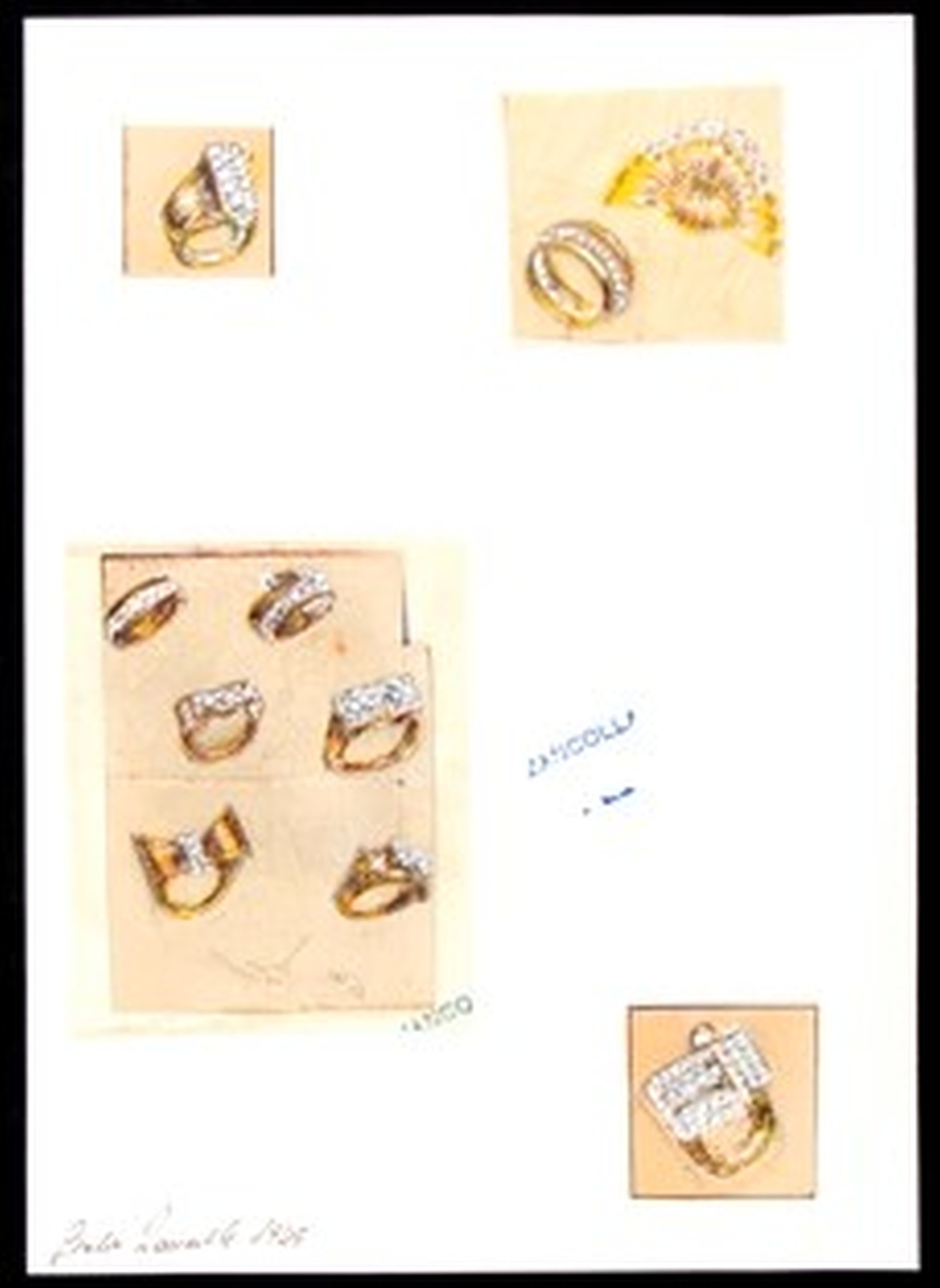 Progetto per anelli, GIULIO ZANCOLLA Anni '40 disegni di anelli in oro giallo...
