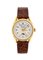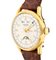 cassa placcata in oro e fondello in acciaio a scatto, cinturino in pelle, quadrante argentè con numeri arabi dorati e altre parti policrome. Presenti giorno e mese a ore 12 e data sul perimetro, fasi lunari ore 6. Movimento meccanico a carica manuale. Base venus 206.