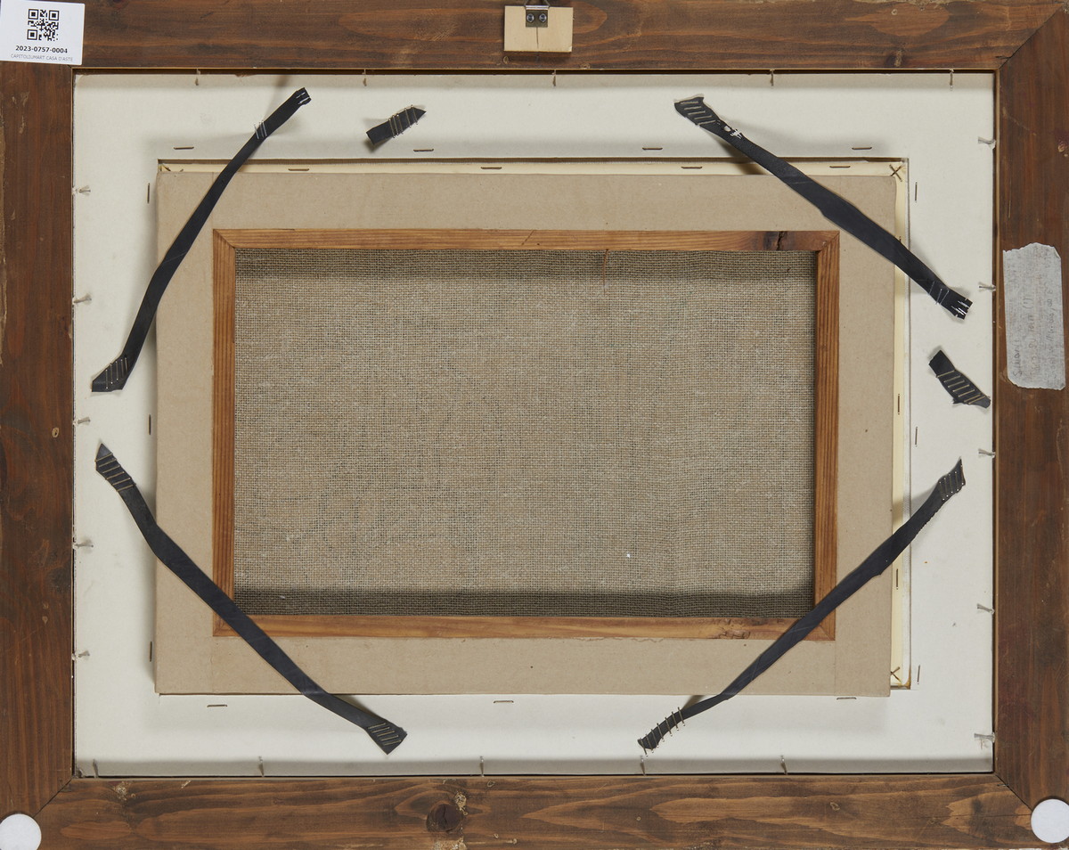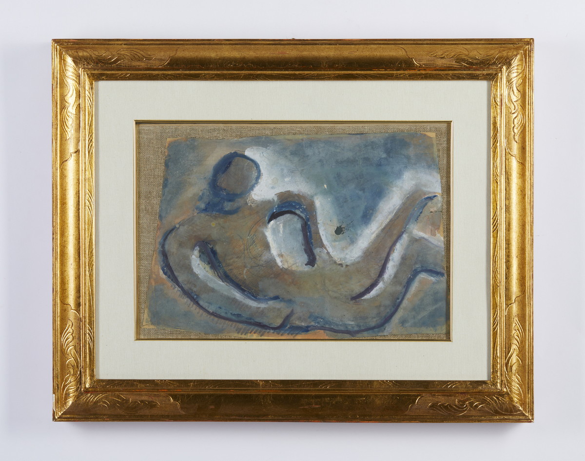 SIRONI MARIO (1885 - 1961) FIGURA, (1954). tempera, matita e matita grassa su carta apllicata su tela. Cm 45,00 x 30,30. L'opera è archiviata presso l’Associazione per il patrocinio e la promozione della figura e dell’opera di Mario Sironi, Milano. Cornice presente