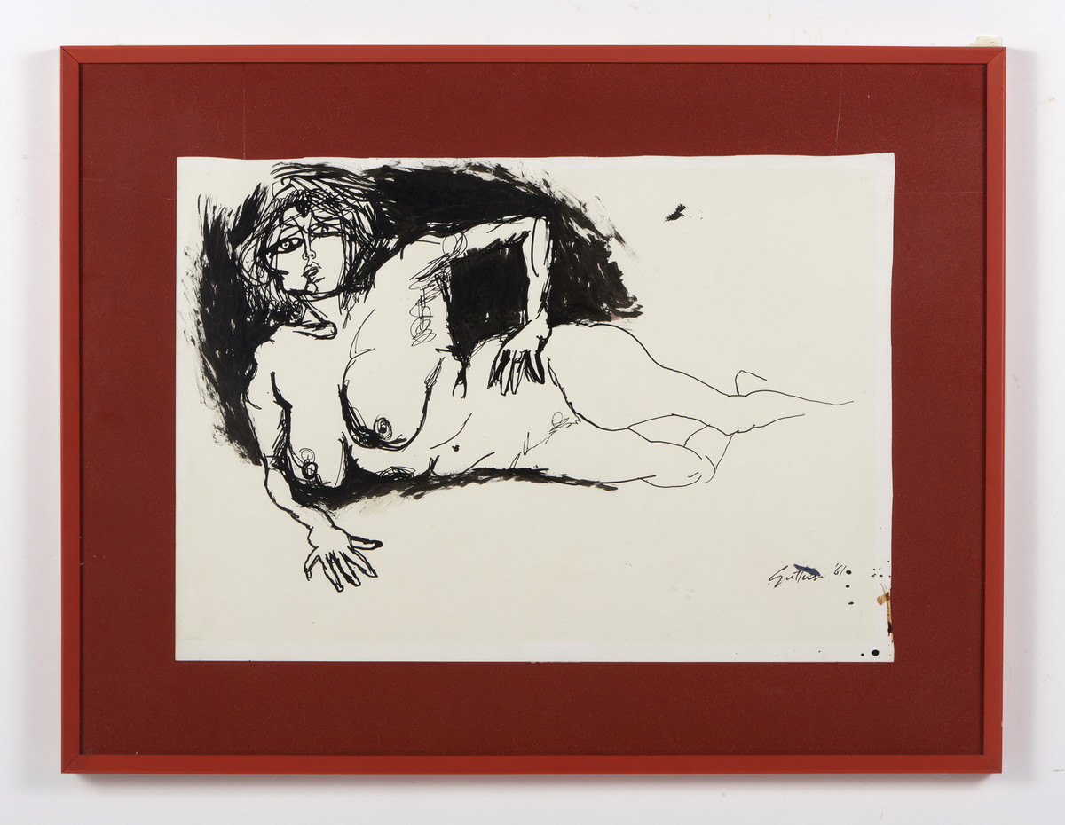 GUTTUSO RENATO (1912 - 1987) SENZA TITOLO, 1961. China su cartoncino. Cm 50,00 x 35,00. firma e data