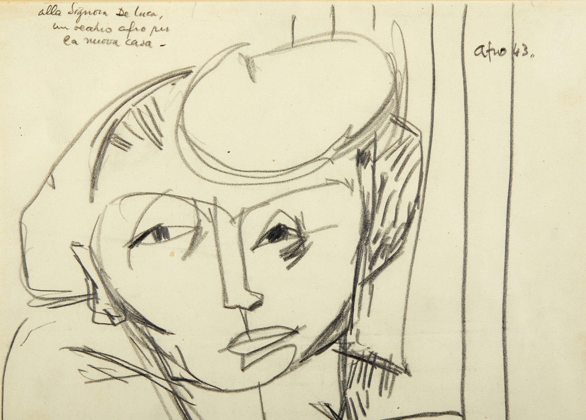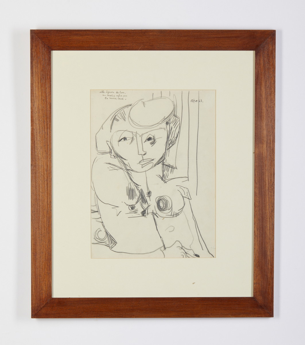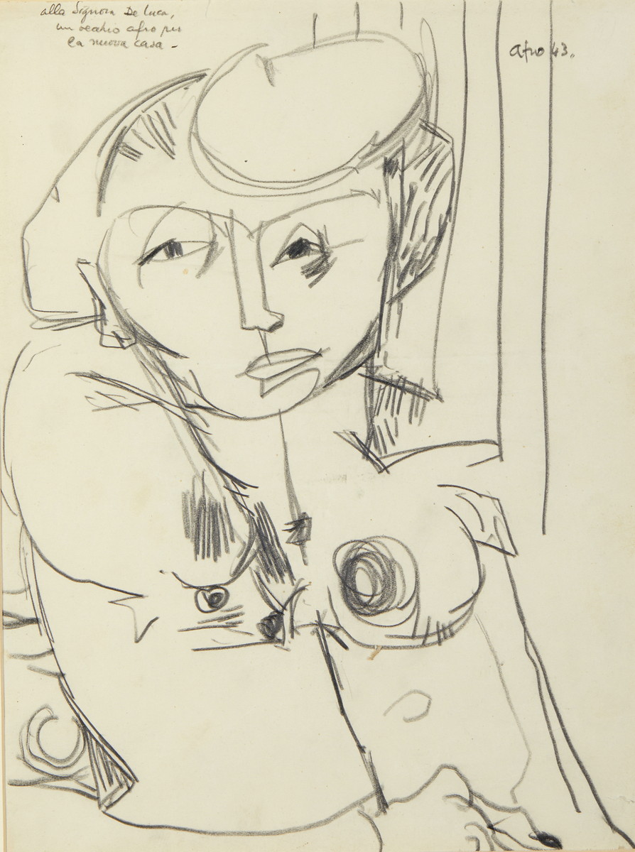 BASALDELLA AFRO (1912 - 1976) SENZA TITOLO, 1943. Matita su carta. Cm 24,00 x 32,30. firma, data, dedica ad personam