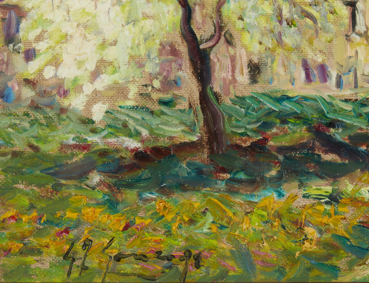 GONZAGA GIOVAN FRANCESCO (1921 - 2007) PRIMAVERA IN VERSILIA, 1947. olio su tela. Cm 30,00 x 30,00. firma e data