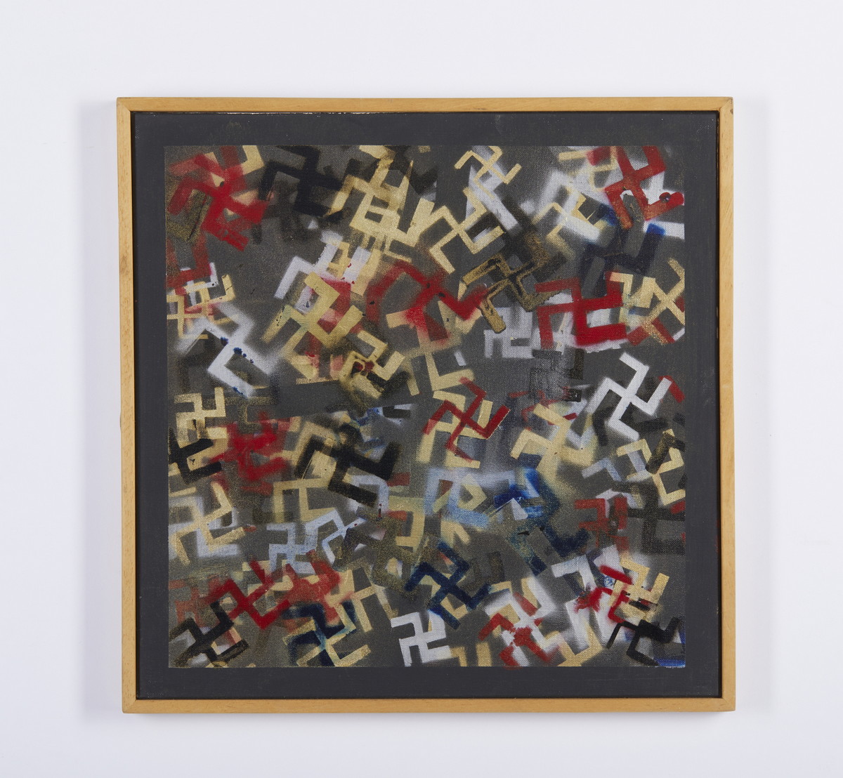 ANGELI FRANCO (1935 - 1988) SENZA TITOLO (SIMBOLI), 1984. Tecnica mista su tela. Cm 35,00 x 35,00. sul retro: firma e data; etichetta Studio Oggetto, Caserta