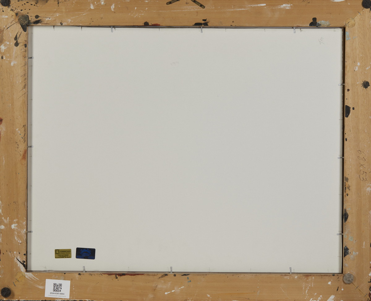 L'opera è accompagnata da autentica dell'artista su fotografia. Cornice presente