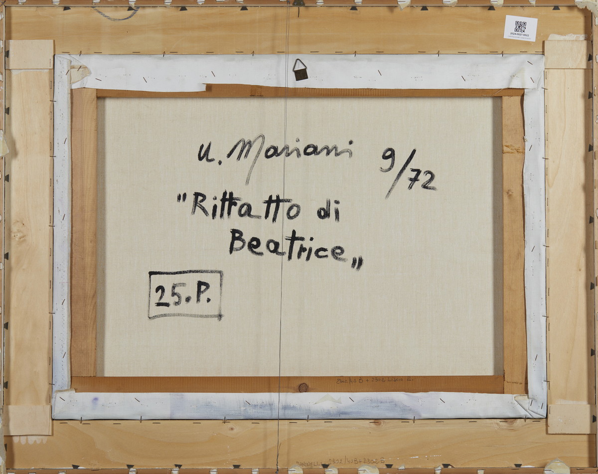 MARIANI UMBERTO (n. 1936) RITRATTO DI BEATRICE, 1972. olio su tela. Cm 81,00 x 60,50. sul retro: titolo, firma e data. Cornice presente