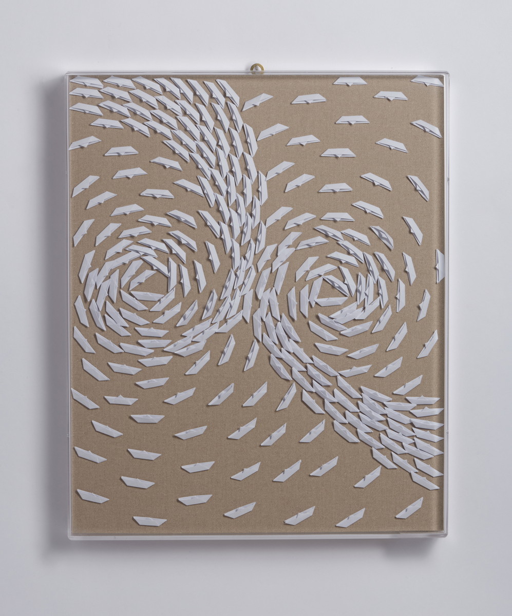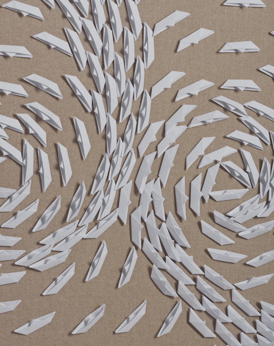GUSMAROLI RICCARDO (n. 1963) VORTICE BIANCO, 2023. Barche di carta su tela . Cm 45,00 x 55,50. sul retro: firma