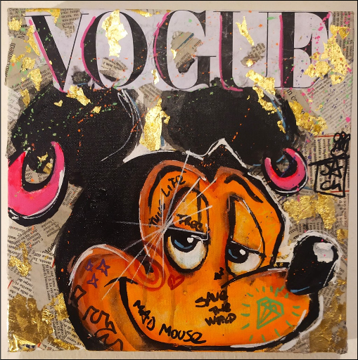 PEREGO JACK Italia 1988 "Mad Vogue Mouse" Tecnica mista su tela cm 30x30. Firmata sul fronte, sul retro titolo, firma ed ideogrammi. Autentica su foto.