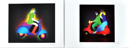 MARCO LODOLA Lotto unico di due litografie a colori - Ragazza in vespa – es. 27/60 cm. 34x48 - Ragazzi in vespa – es. 4/70 cm. 34x48 Firma e tiratura in basso