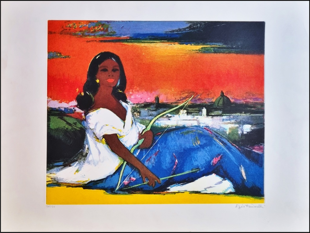 FARINELLI EZIO Rieti 1937 "Senza titolo" Incisione su cartoncino cm 79,5x60. Firma e timbro a secco sul fronte in basso a destra, tiratura 93/150 a sinistra.
