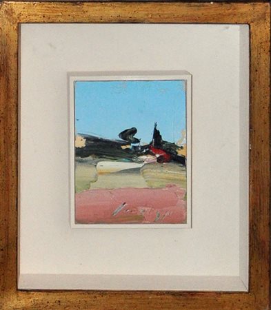 SERGIO SCATIZZI Paesaggio Olio su tavola cm. 13,5x10 Firma in basso