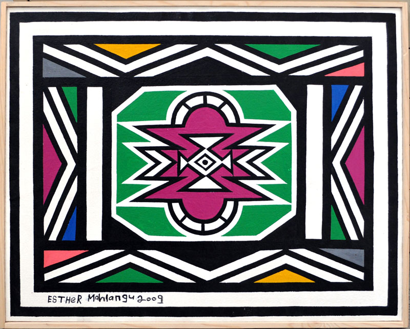 ESTHER MAHLANGU Senza titolo, 2009 Acrilici su tela cm. 64x78,5 Firma e data in basso