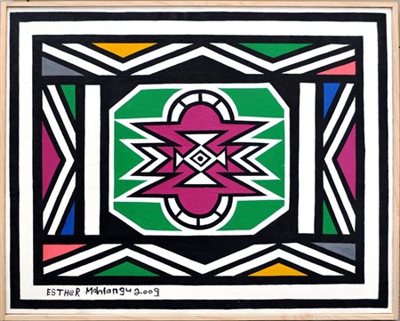 ESTHER MAHLANGU Senza titolo, 2009 Acrilici su tela cm. 64x78,5 Firma e data...