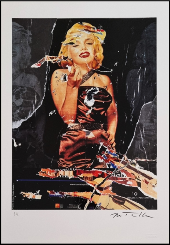 ROTELLA MIMMO Catanzaro 1918 - Milano 2006 "Atto d'amore" Serigrafia su cartoncino pesante cm 35x50. Firmata sul fronte in basso a destra, tiratura P.A. a sinistra. Certificato di autenticità a cura della Spirale Arte Milano.
