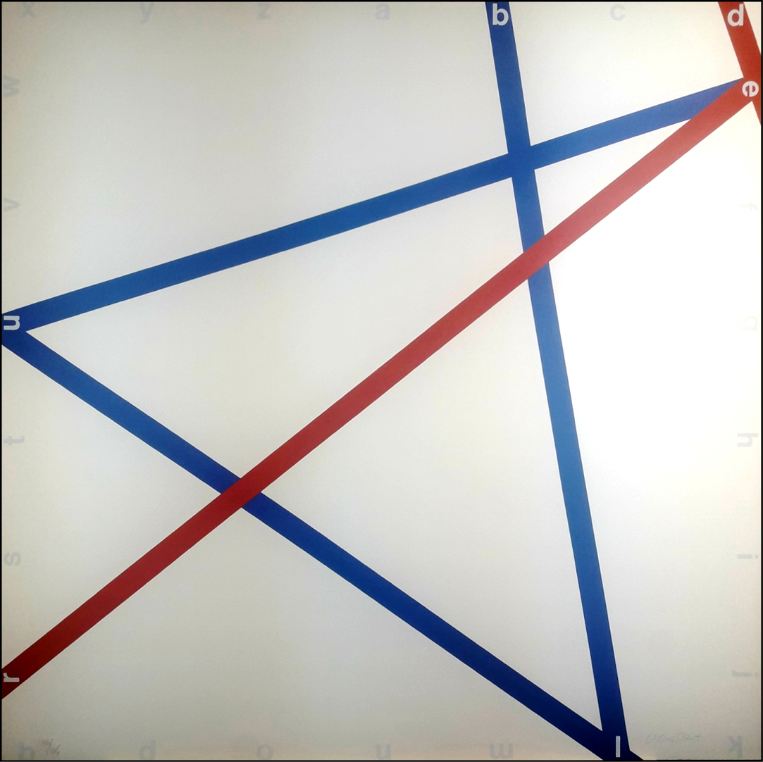 MORELLET FRANCOIS Francia 1926 - 2016 "Blue-red" Serigrafia su cartone Fabriano cm 68x68. Firmata sul fronte in basso a destra, tiratura 46/125 a sinistra. Facente parte della cartella "Exacta - dal Costruttivismo all'arte sistematica 1918-1985".