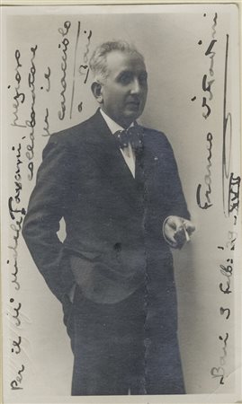 Da vedere. Tra i nomi: Alberto Franchetti, Riccardo Zandonai, Leopoldo Mugnone, Pasquale La Rotella, Francesco Cilea, Franco Vittadini. Carte conservate in 3 cornici. Dimensioni: 600x465 mm (2 cornici) e 410x330 mm (contiene solo il ritratto di Franchetti).(2) -