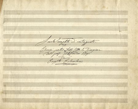 Manoscritto musicale autografo. 1 carta pentagrammata a mano su 20 pentagrammi, scritta recto e verso. Al lato desto della carta, al recto, si legge: “Autografo di Vincenzo Bellini i suoi fratelli / Carmelo [da altra mano] e Mario”. Carta con alcune bruniture. Minime mancanze della carta in prossimità delle piegature senza perdita di testo musicale o poetico. Dimensioni: 230x330 mm. -