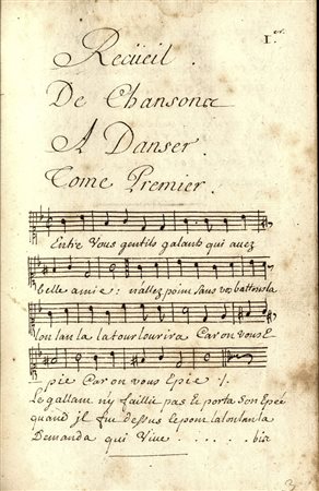 Lotto 875 Recueil / De Chansons / A Danser. / Tome Premier [Tome Second].