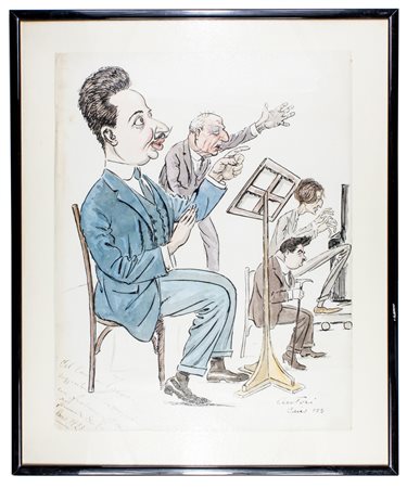 Autori, nato in Sicilia, divenne un celebre tenore e aderì al movimento futurista. Come il collega Enrico Caruso fu un dotato caricaturista. In cornice. Dimensioni: 560x480 mm. -