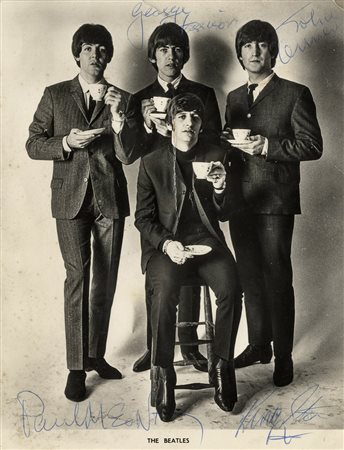 Lotto 877 Beatles, Ritratto fotografico in bianco e nero con firme autografe.
