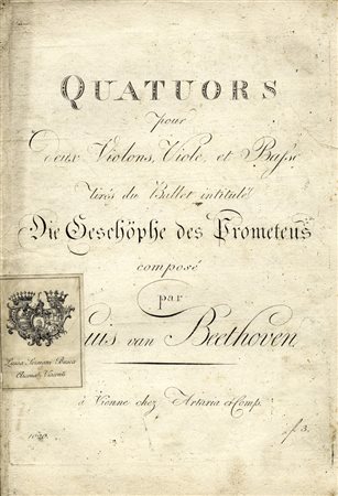 Lotto 879 Beethoven Ludwig van, Quatuors / pour / deux Violons, Viole, et Basse / tirés du Ballet intitulé / Die Geschöphe [!] des Prometeus [Op. 43] / […].