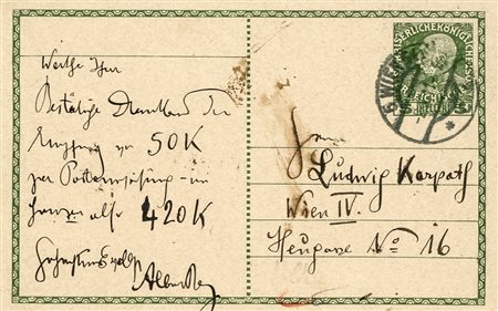Lotto 881 Berg Alban, Cartolina viaggiata, autografa firmata.