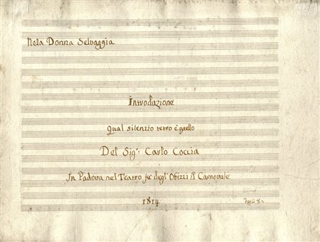Lotto 896 Coccia Carlo, Nella Donna Selvaggia / Introduzione /Qual silenzio tetro è quello / […] / In Padova nel Teatro fu degl'Obizzi il Carnovale / 1814.