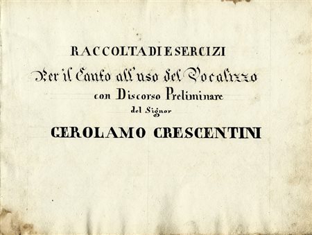Lotto 898 Crescentini Girolamo, Raccolta di esercizi / per il canto all'uso del Vocalizzo / con Discorso Preliminare / del Signor / Gerolamo Crescentini.