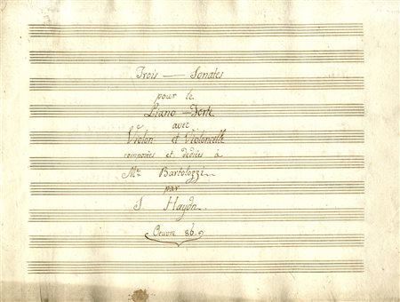 Lotto 907 Haydn Franz Joseph, Trois Sonates / pour le / Piano – Forte / avec / Violon et Violoncelle / composées et dediées à M.e Bartolozzi / par J. Haydn / Ouvre 86.