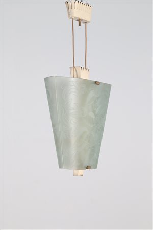Lotto 63 CHIESA PIETRO (1892 - 1948) Lampadario in legno laccato, ottone, cristallo molato e inciso, per Fontana Arte, anni 40. -. Cm 54,00 x 90,00 x 22,00.