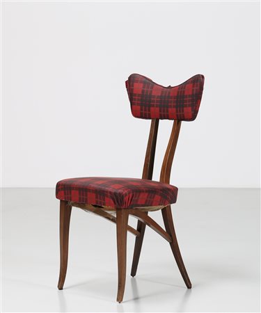 Lotto 67 BEGA MELCHIORRE (1898 - 1976) Attrib. Sedia in noce con seduta e schienale in tessuto plastificato originale, anni 50. -. Cm 43,00 x 85,50 x 50,00.