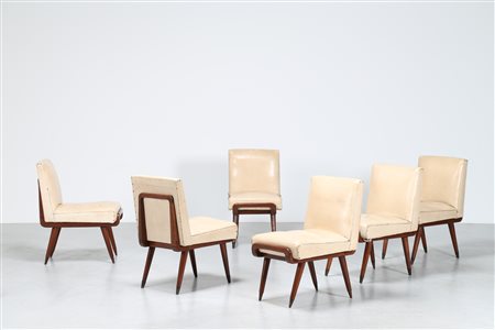 Lotto 68 SCAPINELLI JOSÉ Attrib. Sei sedie in legno con puntali in ottone e sky originale, provenienza importante dimora in Cuba, anni 50 . . Cm 44,50 x 76,00 x 60,00.