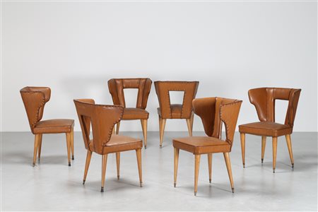 Lotto 82 SCHAEFER BERTHA Sei sedie in noce e pelle, per Singer & Sons, anni 50. Pubblicazione; Singer & Sons catalogo del produttore, c. 1950 . -. Cm 50,00 x 77,50 x 53,00.