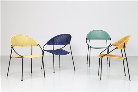 Lotto 70 RINALDI GASTONE Poltroncine in tubo d’acciaio laccato e puntali di ottone, seduta e schienale in plastica intrecciata, mod. DU 41, produzione RIMA 1956. Pubblicazioni; Catalogo Gastone Rinaldi - Designer alla Rima a cura di Giuseppe e Jacopo Drago, pag.186. . -. Cm 57,50 x 80,00 x 58,00.