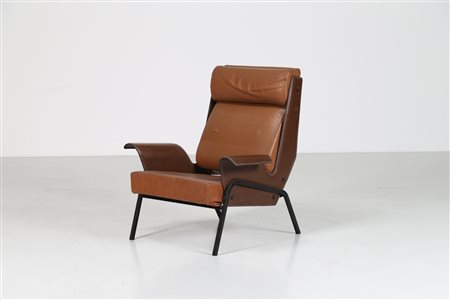 PULITZER FINALI GUSTAVO (1887 - 1967) Metal, hide and leather armchair, mod. Alba for Arflex 1959. Literature; Domus num. 361 december 1962 pag. 145; Il Mobile Italiano Degli Anni 40 e 50, de Guttry e Maino, pag. 85. . . Cm 83,00 x 95,00 x 80,00. -