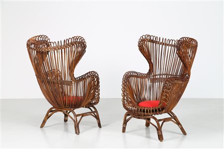 MALCHIODI PAOLO Pair of wicker armchairs, Fiorentine manufacture, 50’s. . . Cm 79,00 x 127,00 x 95,00. -