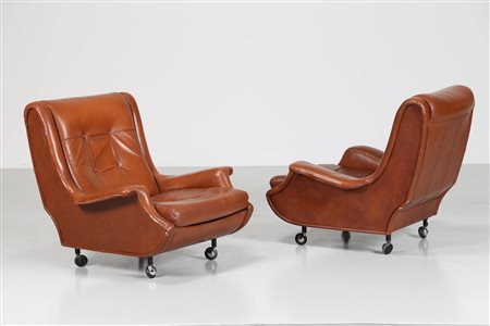 Lotto 75 ZANUSO MARCO (1916 - 2001) Coppia di poltrone in metallo rivestita in pelle originale. Mod. Regent con rotelle, per Arflex anni 60 Pubblicazioni; Domus num. 395 ottobre 1962 pag. 41; Domus num. 399 aprile 1963 pag. 23; Repertorio 1950-1980, Gramigna, pag. 153 . -. Cm 85,00 x 85,00 x 85,00.