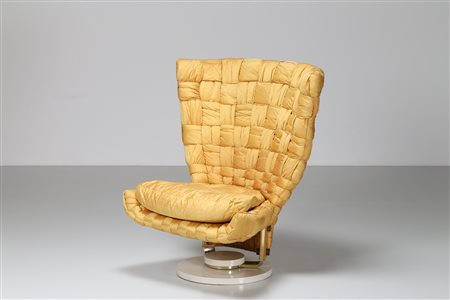 Lotto 77 CECCHI MARZIO Poltrona girevole in metallo verniciato e ottone lucido rivestimento in seta, per Most, anni 70, arredo dimora in Firenze . -. Cm 92,00 x 107,00 x 87,00.