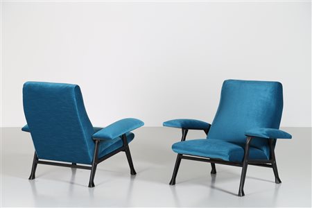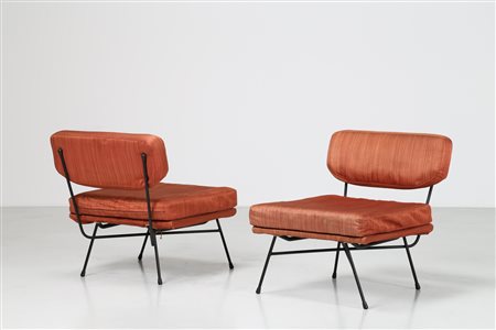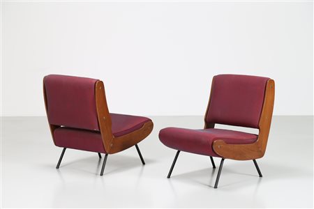 Lotto 93 FRATTINI GIANFRANCO (1926 - 2004) Coppia di poltrone in metallo e legno, rivestimento in tessuto originale mod. 863, per Cassina, anni 50. Pubblicazione; Domus num. 314 gennaio 1956 pag. 98, divano. . -. Cm 57,00 x 78,00 x 75,00.