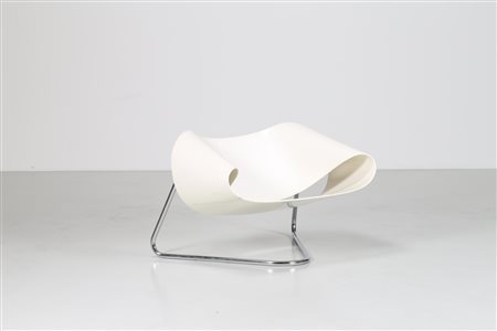 Lotto 79 CESARE LEONARDI & FRANCA STAGI Poltrona con struttura in metallo e fibra di vetro laccata bianca, mod. CL9 Il Nastro, per Bernini 1961 . . Cm 91,00 x 65,00 x 67,00.
